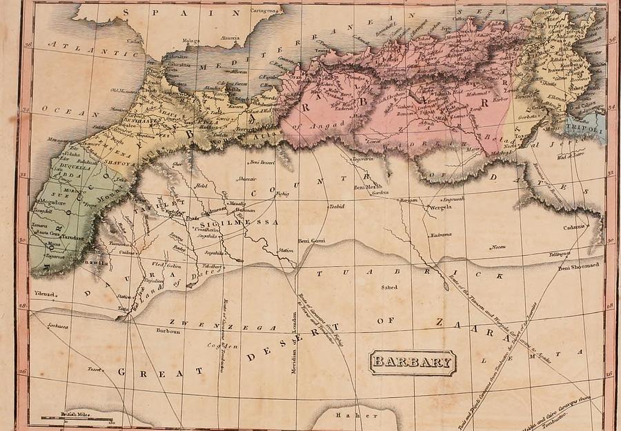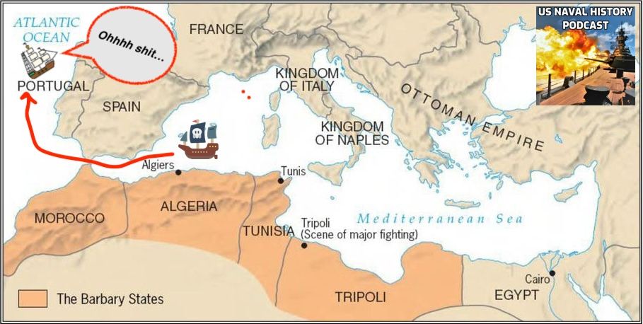 The second major effect that Independence had on American commerce, was that while flying the American flag from you mast may have made a seaman’s heart fill with patriotic pride, it also left the ships without the protection of the Royal Navy, a fact the British publicized widely. It soon became clear the Stars and Stripes were ever only seen atop defenseless merchantmen and never atop warships. Almost immediately after independence American shipping began suffering at the hands of the Barbary pirates, known as corsairs, of North Africa. The Barbary states of Tripoli, Tunis, Algiers and Morocco were nominally part of the Ottoman Empire, but in reality, were largely autonomous. With their backs to the desert and very little agriculture or industry, the traditional livelihood of these city-states was piracy, along with the enslavement of crews, against foreign merchantmen who plied the Mediterranean.