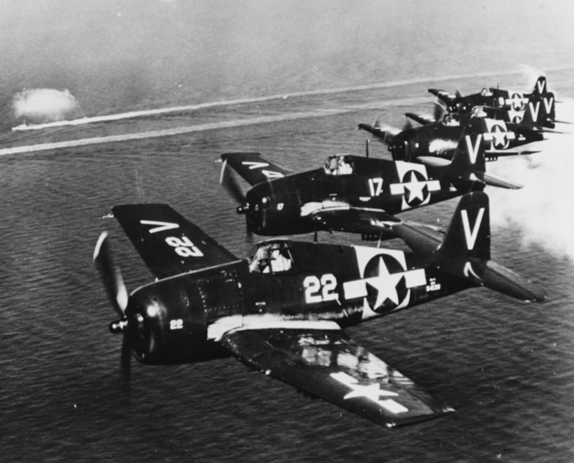 By the middle of 1943, the American fleet was reaping the full rewards of Roosevelt’s Two Oceans Act building boom which had been redoubled immediately after the attack at Pearl Harbor. The first of what would be twenty-four Essex-class fleet carriers was being commissioned and armed with Hellcat and Corsair fighters, and Helldiver and Avenger-class bombers. While Japan’s marquee fighter, the nimble Zero, was the best in the Pacific back in 1941, the new American plane classes, well, outclassed their Japanese counterparts in literally every way.